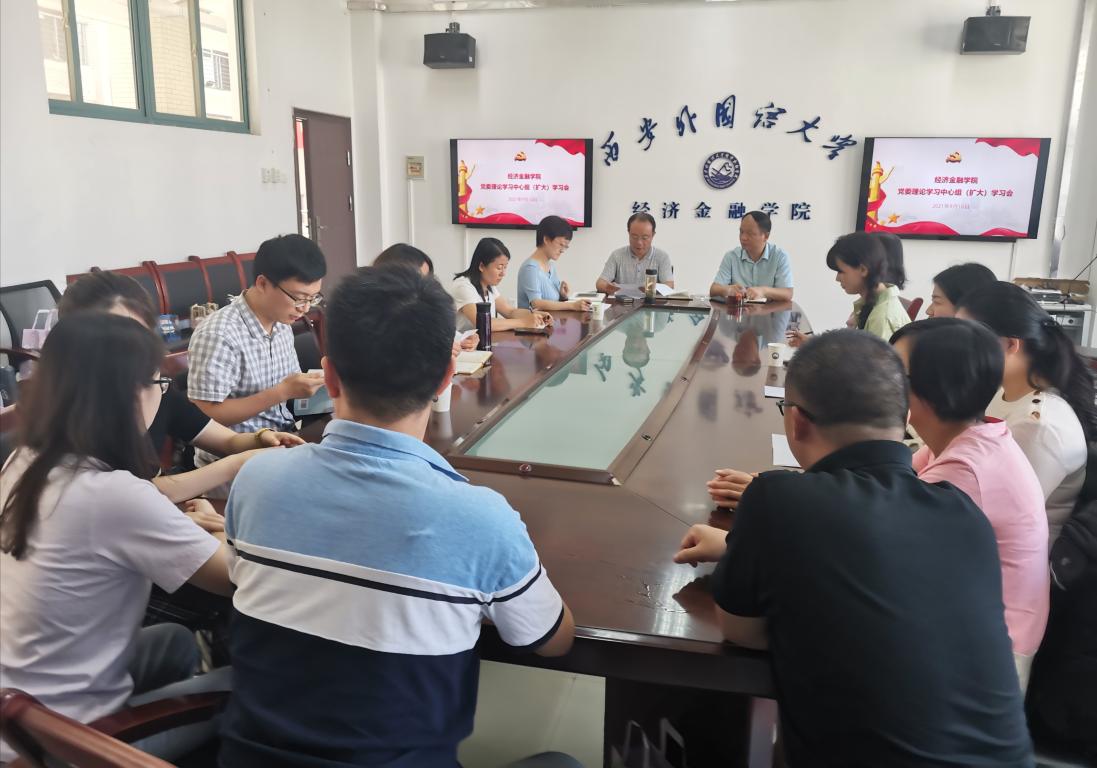 为持续推进党史学习教育进一步走深走实,2021年9月10日下午,在第三十七个教师节之日,青青草视频 组织全体教师在JE310会议室观看了学校庆祝2021年教师节暨先进表彰大会直播,随后召开党委理论学习中心组(扩大)学习会,学院全体教师党员参加,会议由分党委书记魏锋主持。