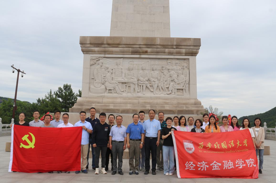 在庄严肃穆的陕甘边革命根据地英雄纪念碑前,学院分党委书记魏锋说明了本次参观学习的目的,带领大家面向纪念碑鞠躬默哀,赵国华副校长和李村璞院长代表学院向革命先烈敬献花篮,向革命先烈致以崇高敬意。最后,在赵国华副校长的带领下,全体党员面对党旗重温入党誓词,在铿锵有力的宣誓声中,再忆入党时的庄严承诺和坚定信心,牢记共产党员的初心使命。