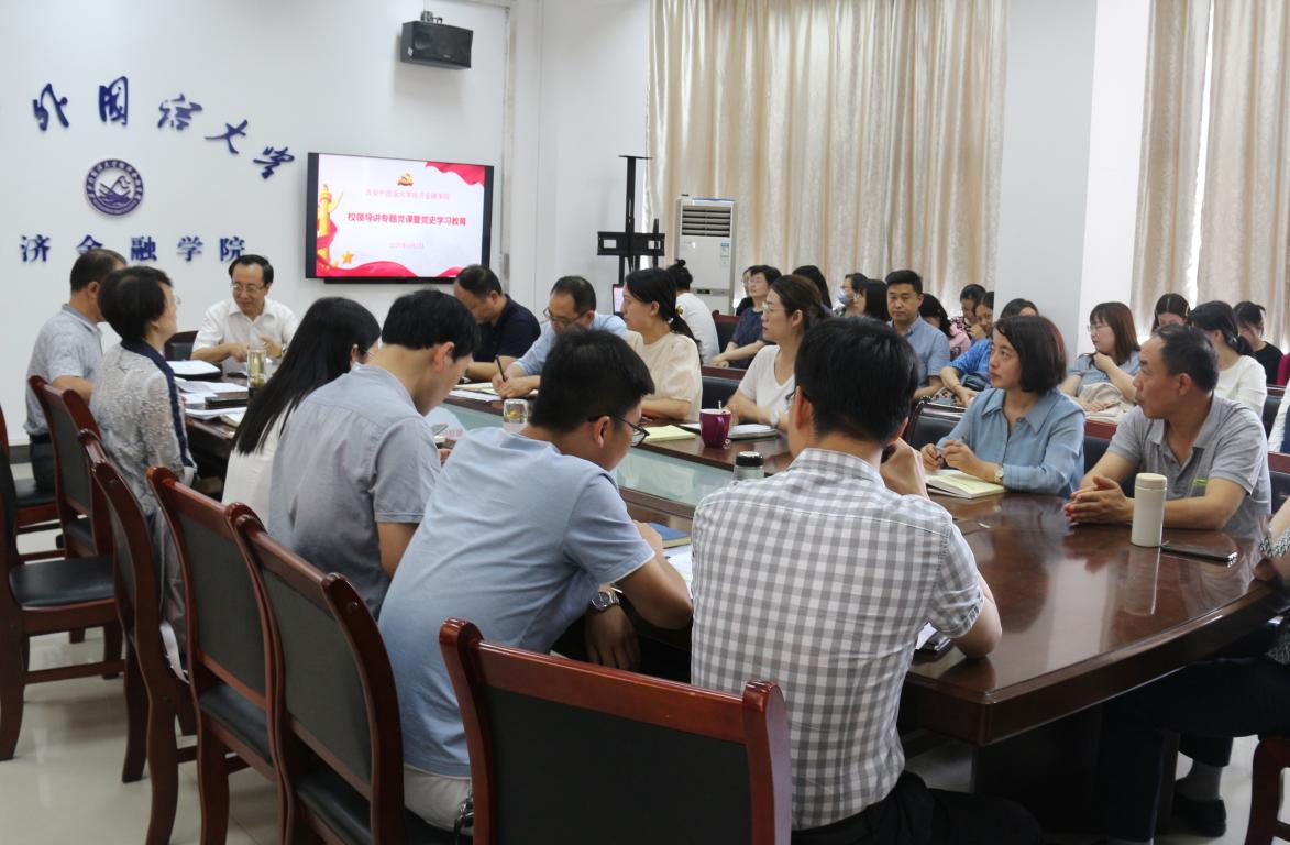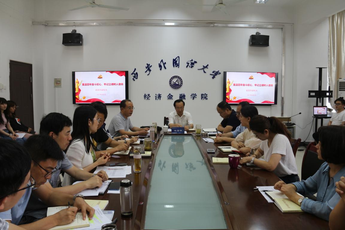 教师党支部书记王恒、王石分别分享了学习社会主义革命和建设时期的心得体会,两位老师从经济学专业背景出发,梳理了百年党史中的扶贫史、经济发展史,回顾了中国共产党带领人民艰苦奋斗,克服重重困难,实现追赶超越的辉煌历史。