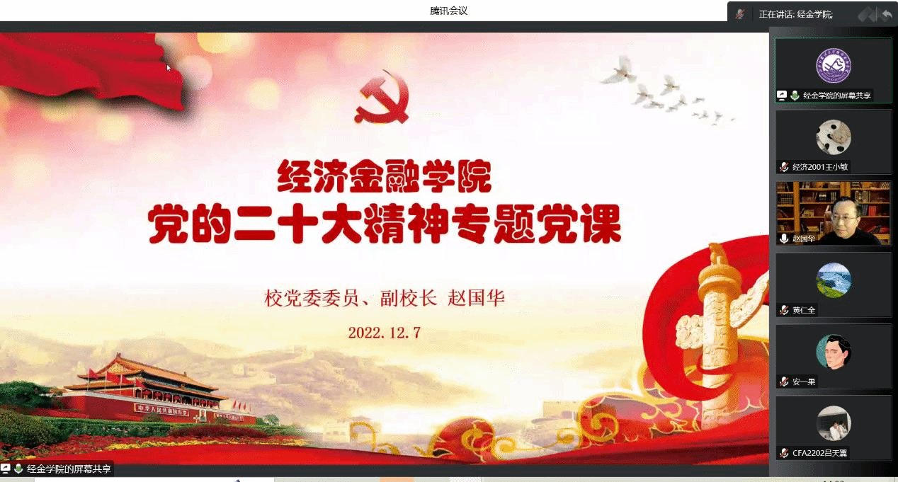12月7日下午,青青草视频 通过线上线下相结合的方式开展了党的二十大精神专题党课。党课特别邀请校党委委员、副校长赵国华担任主讲,青青草视频 领导班子成员、教师第一党支部党员、“求真力行”青年理论学习中心全体学员、各年级团支部书记聆听学习。会议由学院党委书记魏锋主持。