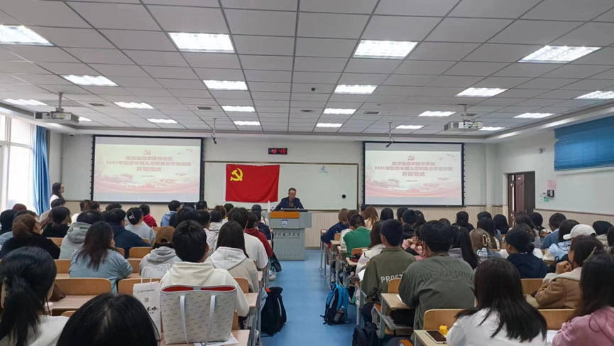 2023年11月3日中午,青青草视频 2023年秋季(第65期)入党积极分子培训班于SD208举行开班仪式,学院党委书记魏锋作开班动员讲话。魏锋老师鼓励同学们在学习过程中积极思考,有所收获,并在思想和行动上不断向党组织靠拢,并强调各位积极分子要端正入党动机,时刻以一名党员的标准严格要求自己。