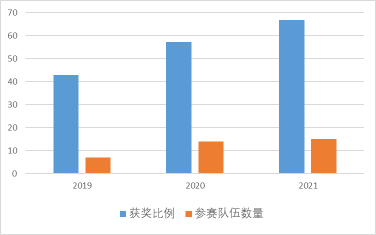 近三年学院参赛队伍数量及获省二等奖以上比例情况