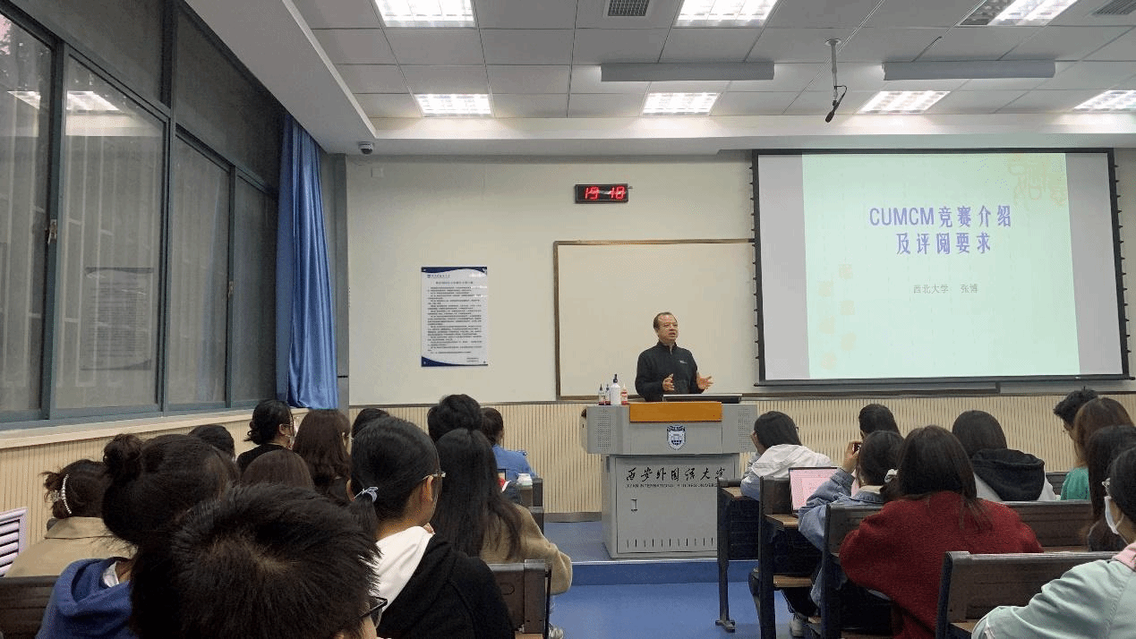 陕西赛区组委会副秘书长、西北大学张博教授,为青青草视频 师生进行数学建模动员指导