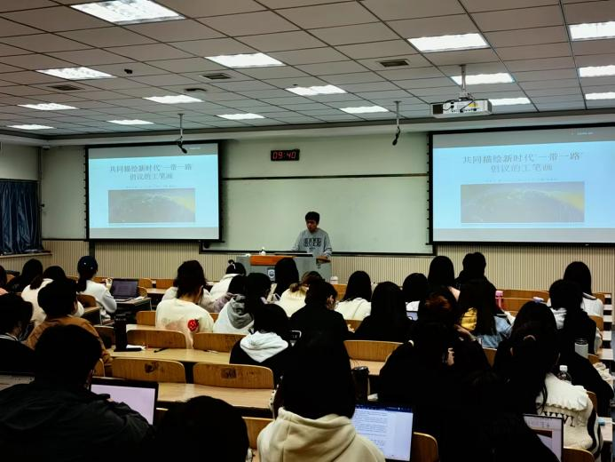 崔娜老师给学生介绍“一带一路”已经成为新时代新型国际公共产品的具体表现,同学们围绕国际经济发展形势、“一带一路”倡议、外贸新业态新模式之跨境电商等主题进行了小组分享与汇报,最后,由党军老师主持,企业讲师吴晓辉进行了题为“国际物流运输方式新演变—中欧班列带来的新机遇”的精彩讲座。