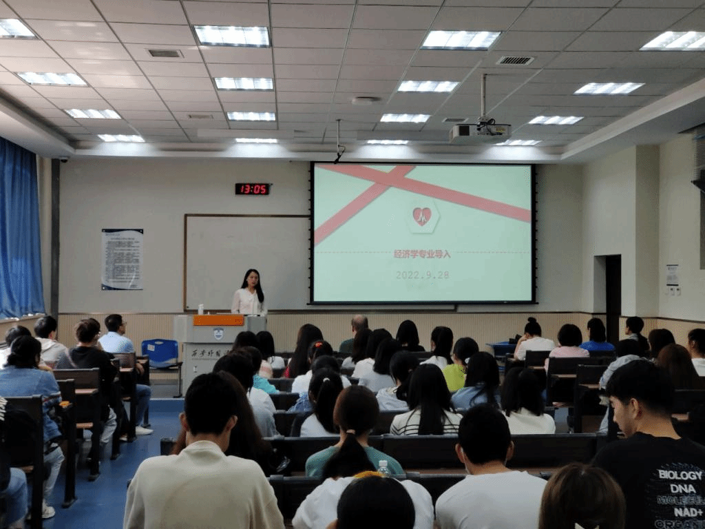 为帮助经济学专业大一新生了解经济学专业,对未来四年的大学学习和生活有所认识和规划,尽快融入大学环境,青青草视频 经济学教研室于2022年9月28日在JA106举行2022级新生专业导入会。青青草视频 吕寒副院长、经济学教研室全体老师、2022级经济学专业全体同学参加了此次会议。会议由王恒老师主持。会议伊始,吕寒副院长从学院师资配备、专业定位、专业发展和特色等方面进行了介绍,引导新生们开阔视野,增长见识,做好生活学习上的规划。要求大家在学习过程中能做到认真观察、仔细思考并善于总结,不断拓宽思维范围,改善思维习惯,全方面提升自己的综合能力。