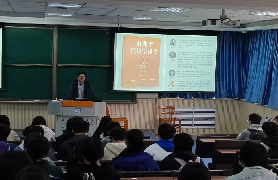 学院2022级班主任邀请各教研室老师进班级班级,如马嫣然、焦贝贝、崔娜、王恒、黄仁全等各位老师分别向2022级新生介绍并带领阅读了《数字经济驱动的全球化》、《中国式规划——从“一五”到“十四五”》、《读懂一带一路》、《薛兆丰经济学讲义》、《苦难辉煌》等书籍,为同学们梳理讲解作者的写作思路,分析书籍的写作特点与亮点。各位老师结合书中的经济学理论,帮助学生了解全球化企业新动向,了解中国十三个五年规划的基本历程,了解“一带一路”的深远影响和原因,从不同角度分析当前我国的经济形式,使同学们认识在全球化趋势下中国的发展的影响以及深刻含义,并坚定将个人命运与时代命运紧密结合的远大目标。