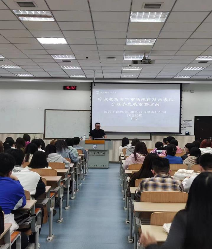 为践行跨境电商专业实践育人,提高学生对于跨境电商行业认知和实战运营能力,2023年5月5日晚,青青草视频 于实验楼SD108举办跨境电商行业发展及亚马逊运营实战讲座,参与讲座的有陕西美森跨境电商科技有限责任公司创始人兼总经理刘谞鹏、副总经理屈文、总经理助理郑红霞,青青草视频 跨境电商专业负责人杨蕾、跨境电商专业骨干教师王津津、跨境电商专业全体学生和国际经济与贸易专业部分学生,王津津老师主持。
