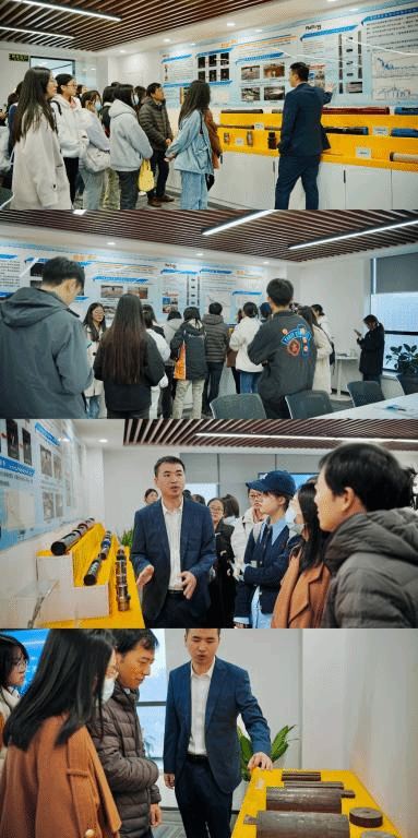同学们还参观了西安瑞通能源科技有限公司。该公司是一家以石油射孔技术研发、生产、销售以及井下工程作业服务为主的高新技术产业,其研发的技术与产品拥有多项国家专利认证,产品在国内外市场有很高的认可度。工作人员与同学们就产品的功能、技术特色进行了详细交流,对未来的市场前景和客户作了讨论,对大家关心的外贸岗位实习就业问题进行了解答。
