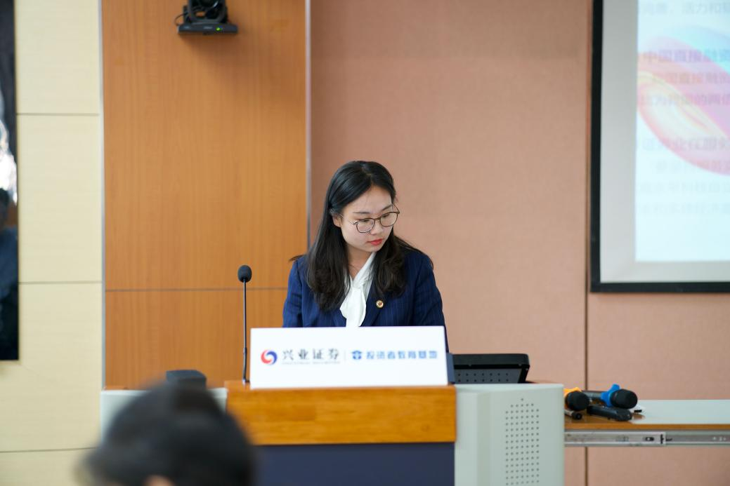 第二部分由陕西分公司人事助理何玉英老师讲授,主题为“兴怀梦想·共创未来”。何老师以兴业证券股份有限公司的发展历程为切入点,辅以公司的主要业务发展类别、现阶段提供的岗位、公司福利和社团、对新人实施的多元化培养方案以及招聘要求和联系方式,丰富了同学们认知的兴业证券公司的形象和内涵,引发了同学们对于证券行业的向往。在讲座趋于尾声之际,何老师强调同学们应丰富自身个人履历,鼓励大家积极投递简历,参与实习项目,为自己未来的职业发展之路打下坚实基础。