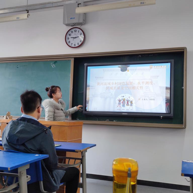 2020级应用经济学研究生曹书娅同学、刘凯悦同学从论文的写作过程、研究方法等方面进行了精彩的报告和展示。曹书娅报告了个人选题——《中国农业水资源利用效率区域差异及分布动态演进》,通过运用Global-SBM-Malmquist模型和全要素用水效率指标测度了中国省际农业用水效率,并就测度结果展开区域差异分析。刘凯悦分享了期刊论文——《黄河流域乡村绿色发展:水平测度、区域差异及空间相关性》,首先从论文写作的方法上强调了理论基础的重要性,接着通过对测度效果的解读分析了黄河流域8省区乡村绿色发展水平的区间差异和空间相关性。两位同学展示后,与会师生进行了热烈的讨论交流。王恒老师和焦贝贝老师从ppt的制作和呈现、论文写作的逻辑、结构和规范等方面指出问题并详细地给出了建议,同学们表示受益匪浅。