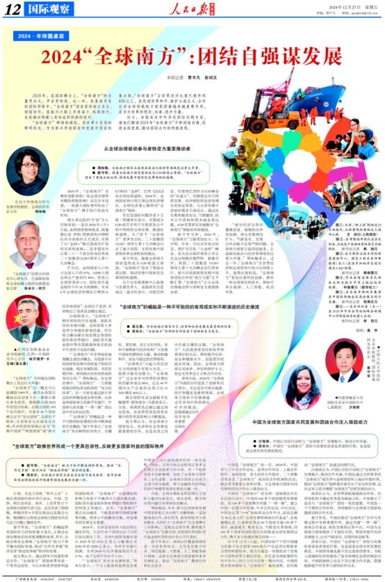 2024年12月27日,《人民日报海外版》围绕“2024‘全球南方’:团结自强谋发展”主题举行2024年终圆桌谈,青青草视频 “全球南方”经贸合作研究中心研究员泽米尔·阿万受邀参加,并就“全球南方”合作的意义、合作领域及未来前景等问题发表评论。