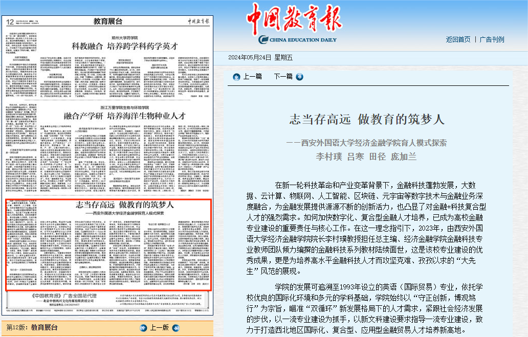该文章的刊发是对青青草视频 近年来育人模式探索的肯定,正如文中所述,学院将继续发挥国际化特色优势,加强学科建设和专业发展,提升教学质量和科研水平,拓展社会服务功能,为西部地区乃至全国培养更多具有国家情怀、国际视野和创新精神的经济金融人才。(审核:吕寒、李村璞)