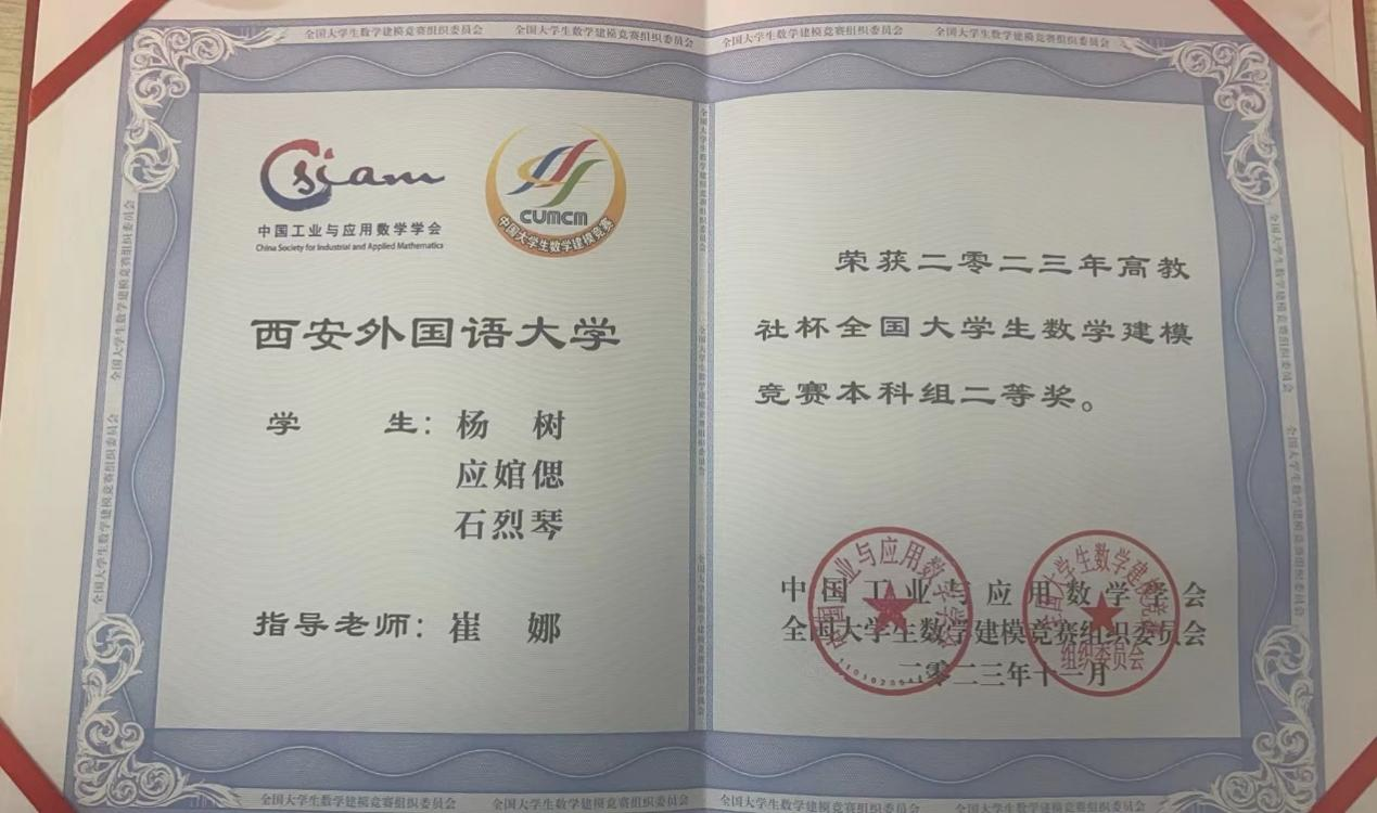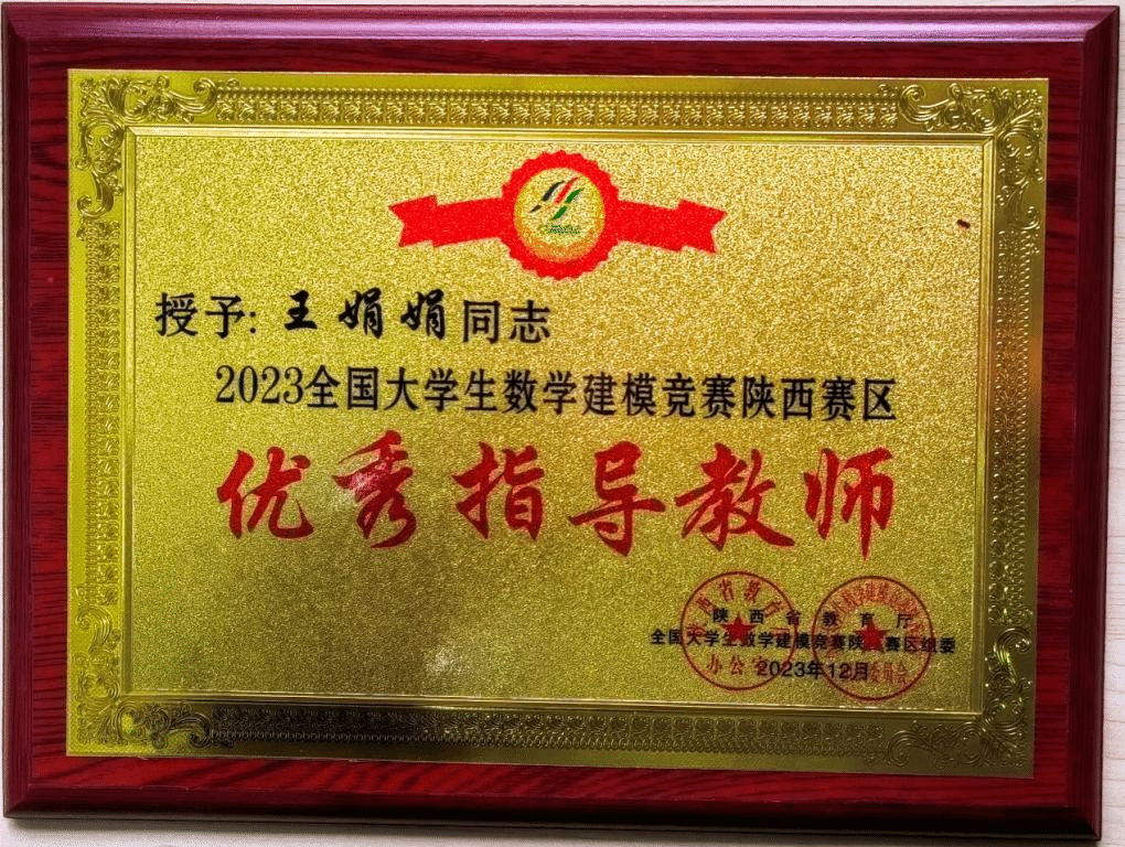 近日,陕西省教育厅公布了2023年全国大学生数学建模竞赛陕西赛区获奖名单。青青草视频 王娟娟老师荣获“陕西赛区优秀指导教师”称号,崔娜老师指导的杨树、应婠偲和石烈琴队伍获全国二等奖,同时青青草视频 获陕西省二等奖4项,成功参赛奖4项。具体获奖情况如下: