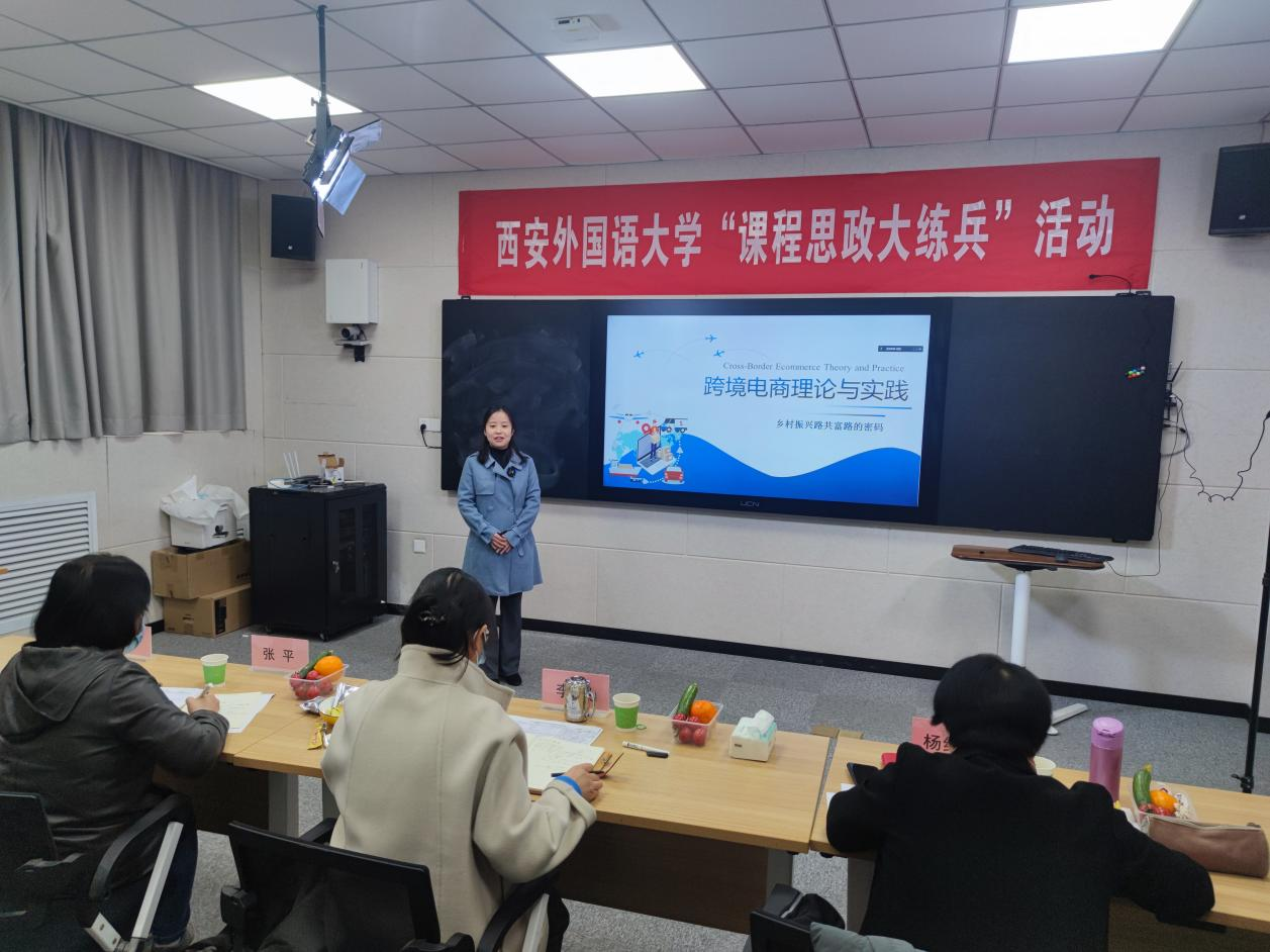 为深入学习宣传贯彻党的二十大精神,全面推进大思政课建设,充分发挥课程建设“主战场”、课堂教学“主渠道”、教师队伍“主力军”在高校思想政治教育工作中的作用,学校教务处以“学好二十大精神,办好‘大思政课’”为主题,自今年10月起组织全体教学单位开展2022年度课程思政“大练兵”活动。学院认真筹备,积极动员,精心组织老师们参与了此次课程思政“大练兵”的选拔,各教研室共推荐了8位教师参加学院初赛。学院特邀校内外两位专家,对参赛教师进行指导和选拔。经过课程设计、教学大纲评选以及在线授课演示两个环节,王津津老师脱颖而出,推荐其参加校级决赛。在校赛环节中,王津津老师通过现场展示、专家评比的激烈角逐,评委一致认为王津津老师讲授的《跨境电商理论与实践》课程,教学设计理念清晰、思政元素融入自然,能够将党的二十大精神融入课堂教学,体现了专业课程与思政教育的交融,并授予王津津校级课程思政“教学骨干”称号。