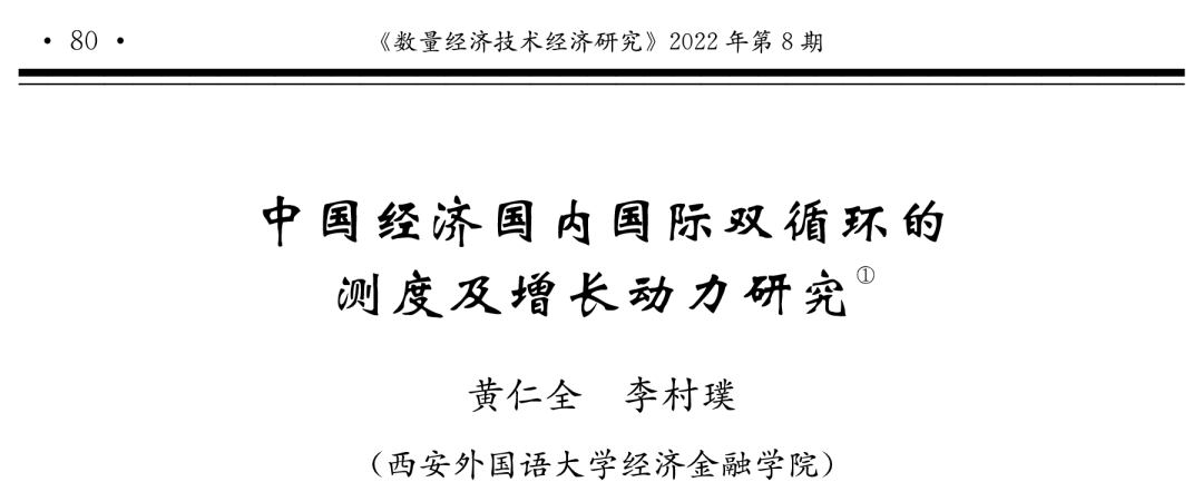《数量经济技术经济研究》创办于1984年,由中国社会科学院主管,中国社会科学院数量经济与技术经济研究所主办,是我国经济学和管理学权威期刊。2020年4月,习近平总书记提出“构建国内国际双循环相互促进的新发展格局”。该论文为揭示国内国际双循环发展机理,测度发展水平以及厘清发展动力,分析国内国际双循环的演变规律深入开展研究,对回答构建什么样的新发展格局、怎么构建新发展格局等问题,具有重要的借鉴价值。