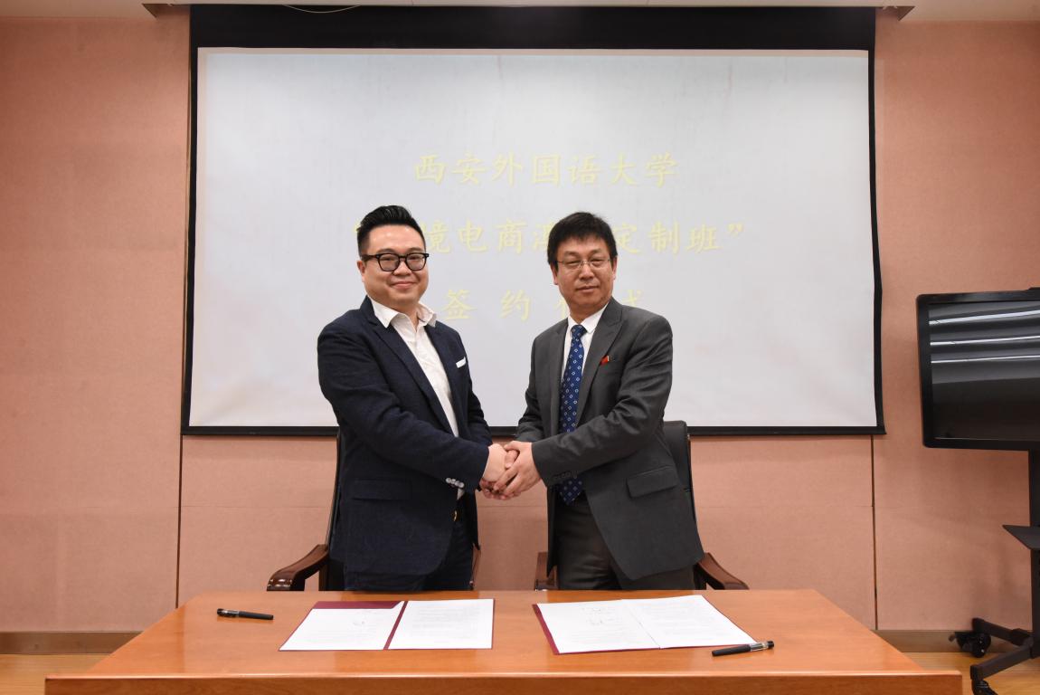 姜亚军副校长代表学校对为此次签约仪式做出大量工作的老师、同学表示衷心的感谢,他表示,近年来,以跨境电子商务为代表的外贸新业态蓬勃发展,已经成为稳外贸的重要力量,我校作为陕西省唯一一所开设跨境电子商务本科专业的高等院校,对扩大跨境电子商务专业人才供给、提振地方经济具有重要的现实意义。学校将充分发挥“语言+商务”的优势,促进我国跨境电子商务专业的建设以及中国电子商务业务健康发展,希望通过此次校企合作能够进一步推进新文科建设,培育文化成果,服务国家战略和区域地方经济发展。