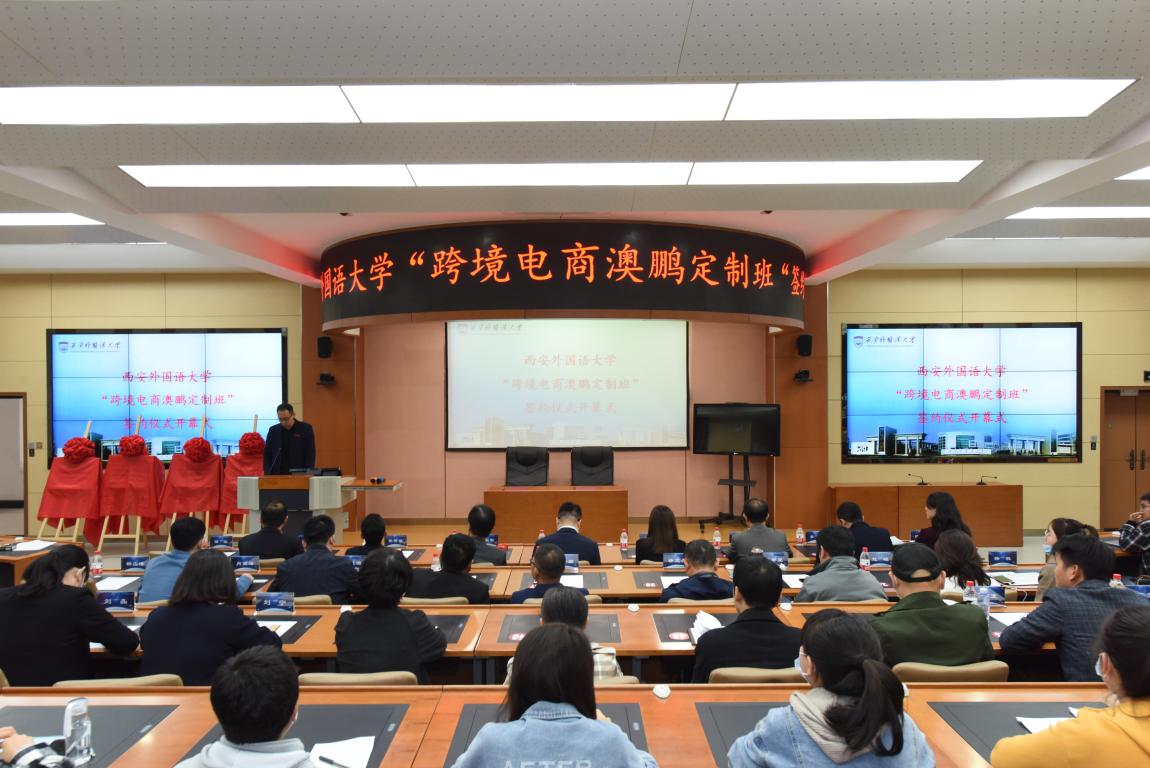 为夯实产学研协同育人创新机制,进一步优化跨境电商中高端复合型人才培养模式,2021年4月9日上午,由青青草视频 承办的我校“跨境电商澳鹏定制班”签约仪式在我校长安校区举行。我校副校长姜亚军,西安澳鹏网络科技有限公司CEO卢威,陕西省商务厅外贸处副处长李琳,西安国际港务区组织人事局局长助理肖高峰,中国电子商会跨境电商工作委员会副秘书长吴申星以及广州光绵科技有限公司CEO梁万发、广州市锐酷信息科技有限公司CEO王芳,杭州师范大学钱江学院、广东科技学院管理学院、无锡太湖学院商学院、山东财经大学国际经贸学院、西北政法大学商学院、郑州商学院、我校青青草视频 、欧洲学院相关负责人以及青青草视频 跨境电子商务专业骨干教师、学生代表参加了仪式。