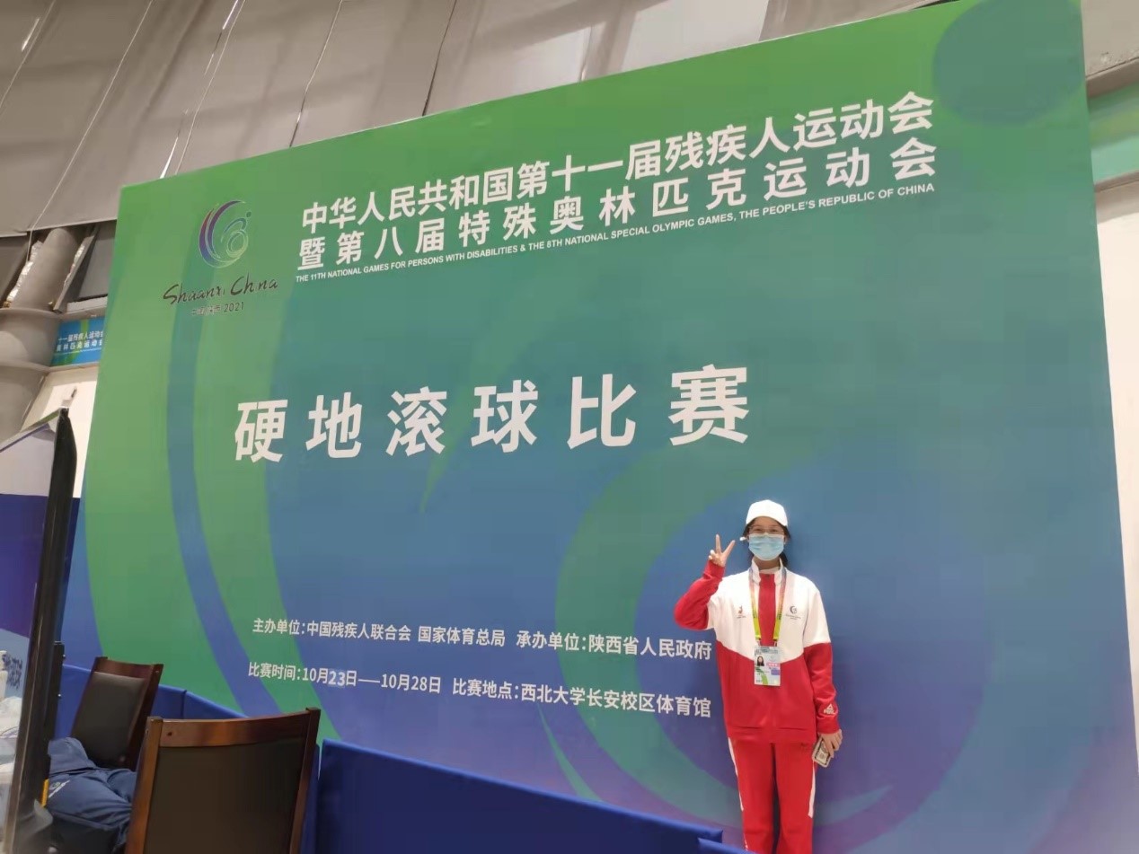 A:我主要服务硬地滚球项目的竞赛组织处,负责观众入口、运动员入口,运动员检录区。主要工作是检录上场比赛的运动员、教练和助理。维持秩序,辅助残疾运动员进出入场馆,及时了解并满足运动员的个人需求如去无障碍卫生间等。