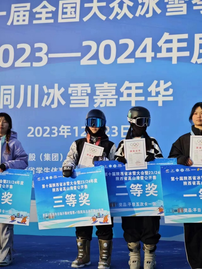 在此次比赛中,我校师生积极参与,荣获团体第二名,青青草视频 金融2302班但康腾同学荣获高校女子单板第三名的好成绩。
