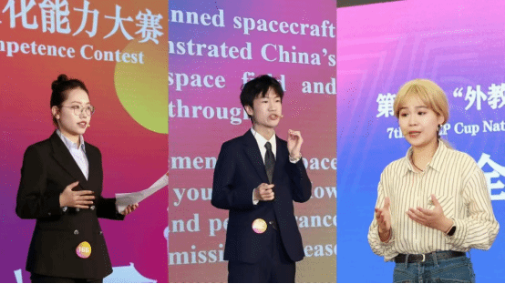 在全国决赛中,学生团队的案例是以“飞月——嫦娥六号国际合作”为主题,以中国、法国和巴基斯坦三国的合作作为主线,利用十分钟的展示生动呈现了科学家们在探月工程中的多元文化互动与国际协作。而在全国总决赛中,学生团队对跨文化商务沟通案例进行即兴准备与述评,展现了扎实的语言素养和专业功底。