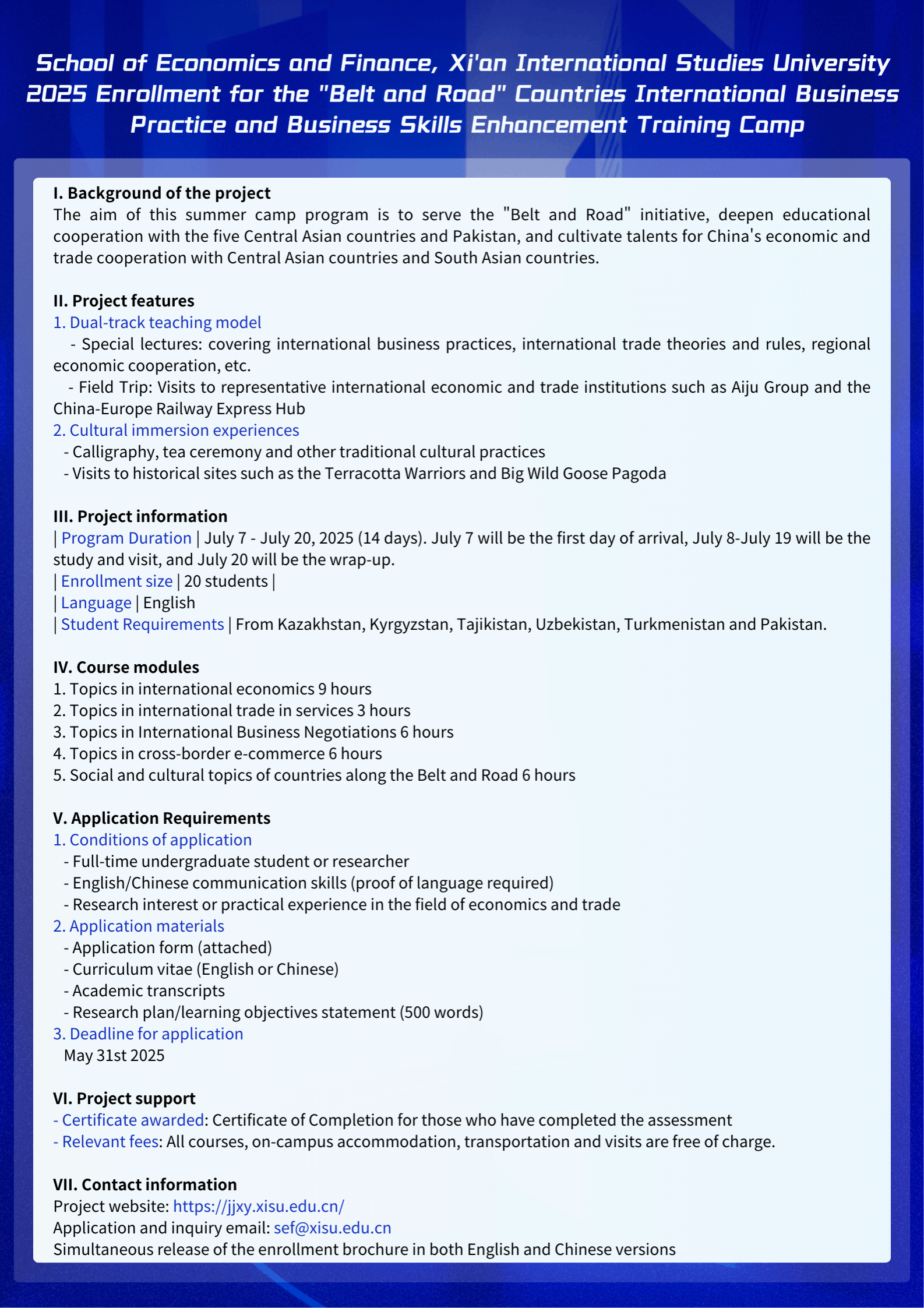 School of Economics and Finance, Xi'an International Studies University 2025 Enrollment for the "Belt and Road" Countries International Business Practice and Business Skills Enhancement Training Camp