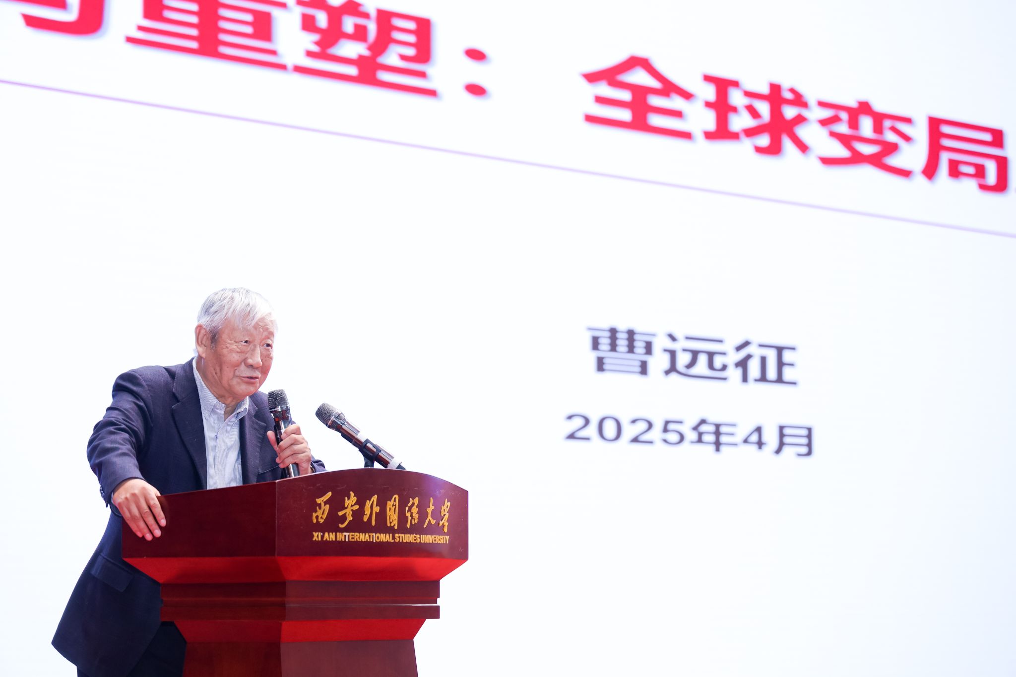 活动伊始,校党委书记刘振涛代表学校向曹远征教授致以热烈的欢迎和诚挚的感谢。他在致辞中表示,“西外大讲堂”作为学校倾力打造的高端学术品牌,始终秉承“传承知识、启迪思想、服务社会、引领学术”的宗旨,致力于为广大师生搭建与国内外顶尖学者深度交流的平台。曹远征教授是我校英语语言文学专业1975届杰出校友,虽已毕业近五十年,他始终情牵母校发展。自2018年起,曹教授捐资设立“远征奖学金”,至今已成功举办五届,共奖励西北五省32名优秀学子,持续激励青年学人勇攀学术高峰、追求卓越。刘振涛书记强调,曹远征教授在学术领域的卓越成就和持续反哺母校的赤子情怀,正是全体西外人“家国情怀、全球视野”的生动体现。