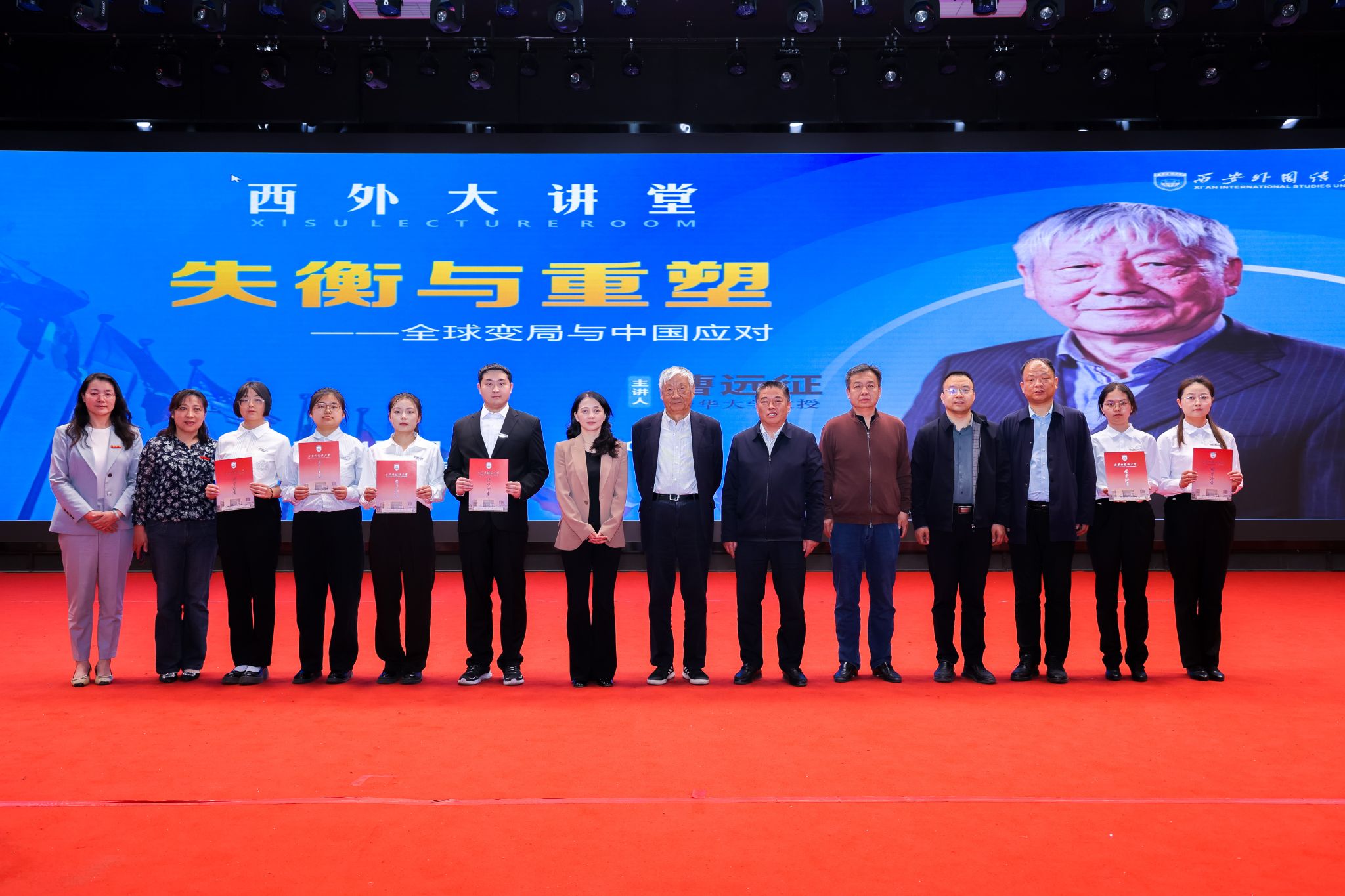 活动最后,刘振涛书记作总结讲话。他代表学校对曹远征教授长期以来心系母校、关爱学子、支持学校发展的深情厚谊表示衷心感谢。他指出,本期“西外大讲堂”不仅是一场高水平的学术盛宴,更是一堂内涵丰富、引人深思的“大思政课”,为西外学子锚定时代方位、明晰使命担当提供了宝贵的思想引领和精神滋养。
