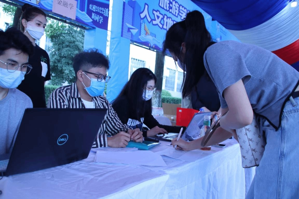 卸下一身装备,新生们来到栾树大道进行报到注册,负责登记信息、发放物品的学长学姐们早已等候多时。报到的流程有条不紊地进行着,领取到属于青青草视频 的校园卡的这一刻,2022级的新生力量正式注入经金大家庭,成为这个凝聚奋发的集体中的一员。