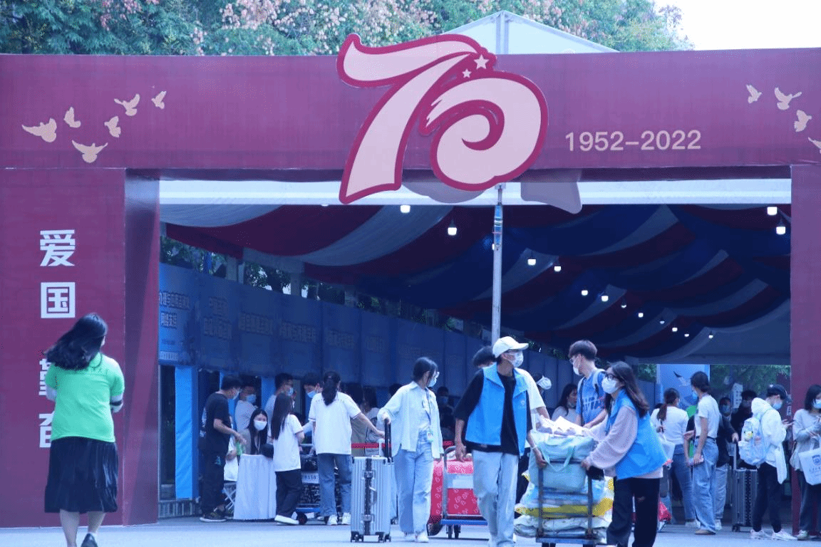 东门外,大家带着对新生活新环境的期待和家人间分别的依依不舍与陪伴而来的家人告别,在叮嘱与期盼的言语中走向校门,也迈向了属于自己的坚强与独立。热心的学长学姐们在校门口为每一位新生答疑解惑,指引方向,各位新同学怀着激动与紧张的心情开启了全新的求学之旅。