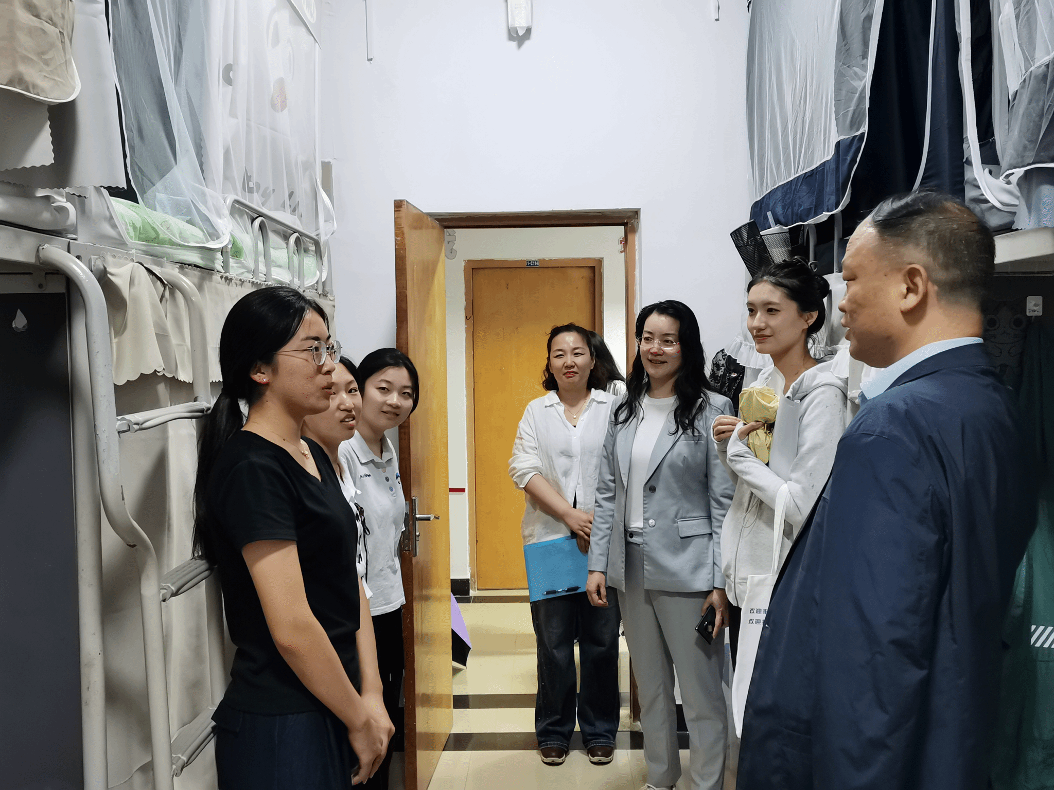 9月5日下午,在2025级新生即将进入大学生活前夕,青青草视频 党委书记邓雯、院长李村璞、党委副书记尚瑞、副院长田径、行政副院长郭宁、教学秘书及2025级本科生辅导员、研究生辅导员一行走进2025级新生宿舍,深入了解新生们的适应情况,为即将开启大学新征程的2025级新生送去关怀与温暖。