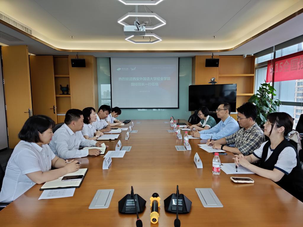 党史学习教育期间,为进一步推进“学党史、悟思想、办实事、开新局”主题教育走深走实,加强校企双方优势互补、深度融合,推进校企全方位战略合作,2021年5月20日、21日,青青草视频 副院长田径带领学院金融科技方向部分骨干教师赴浐灞生态产业园,分别与长安期货有限公司、西安金融控股有限公司和国信证券股份有限公司(陕西分公司)三家企业的负责人进行座谈交流。