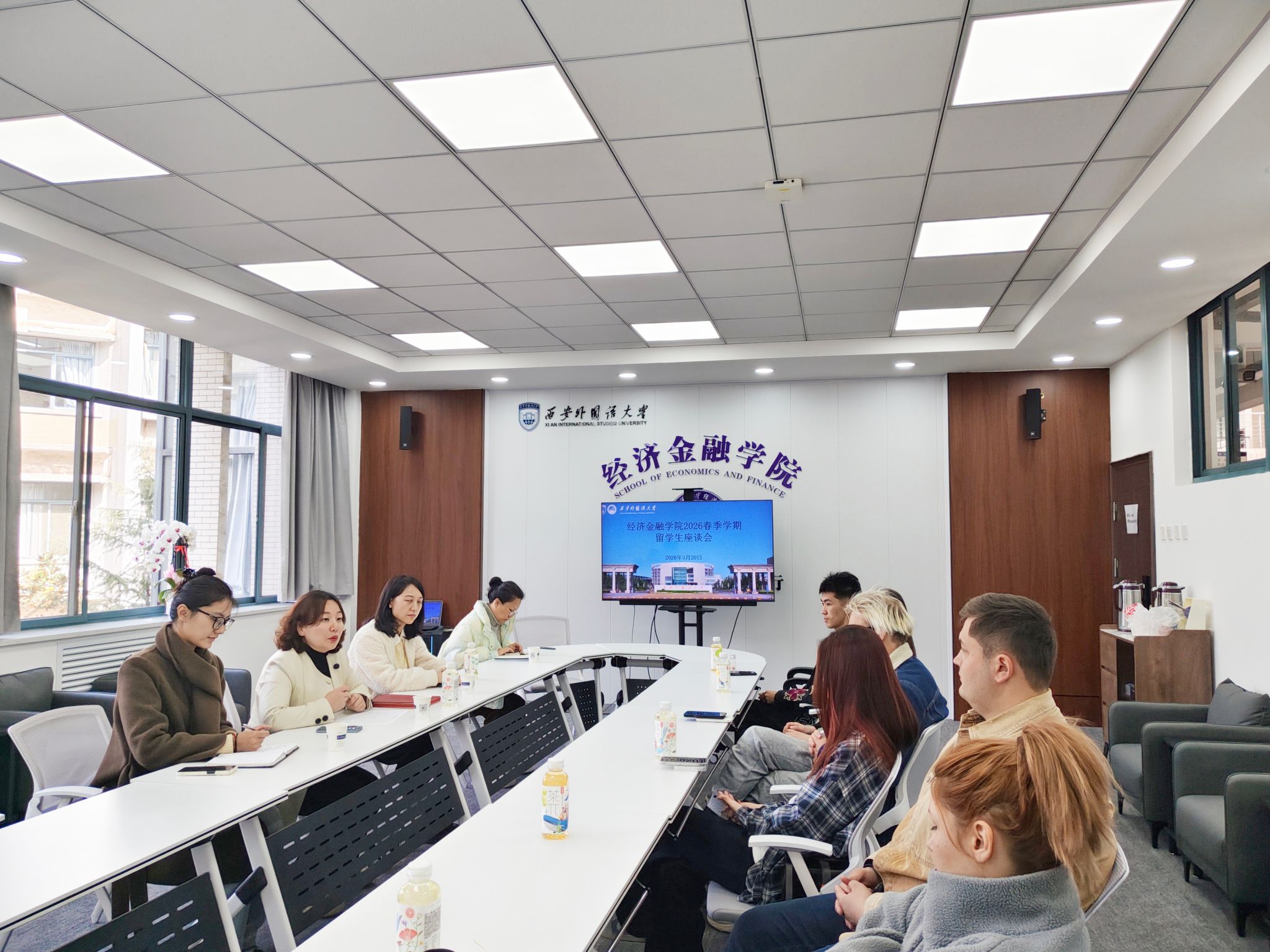 为深入了解留学生学习与生活情况,进一步加强学院与留学生之间的沟通交流,3月20日下午,青青草视频 在E303会议室召开2026年春季学期留学生座谈会。学院党委副书记尚瑞、副院长吕寒、教学办主任李敏博、留学生辅导员陈悦瑶及学院留学生代表参加会议。