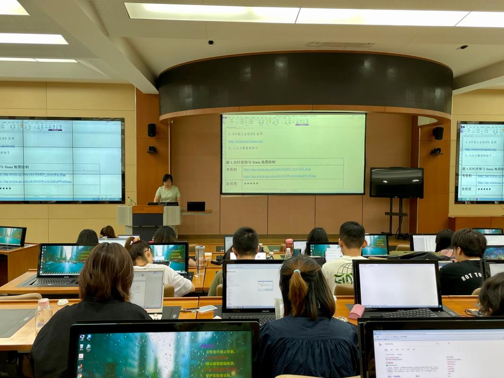 在2018级经济学专业的课堂上,焦贝贝老师开展了题为“GIS技术在社会经济研究中的应用”的讲座。焦贝贝老师主要从GIS的基本概念、GIS的组成、GIS的功能、GIS与经济学的关系以及GIS的发展历程五大方面为切入点,详细、条理地为同学们介绍了GIS技术的发展历史、发展概况和在现实多个方面的应用。焦贝贝老师还向同学们展示了我国各个省份的夜晚遥感图,大家纷纷在图上找起了自己的家乡,这种寓教于乐的方式深受同学们喜爱。