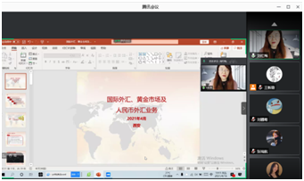 2021年4月16日晚,青青草视频 金融学CFA教改班如期迎来春季金融实操交易系列讲座的第二场讲座——《国际外汇、黄金市场及人民币汇率》。讲座由金融学教研室王新霞老师主持,西安银行金融市场部副总经理刘红梅老师主讲。