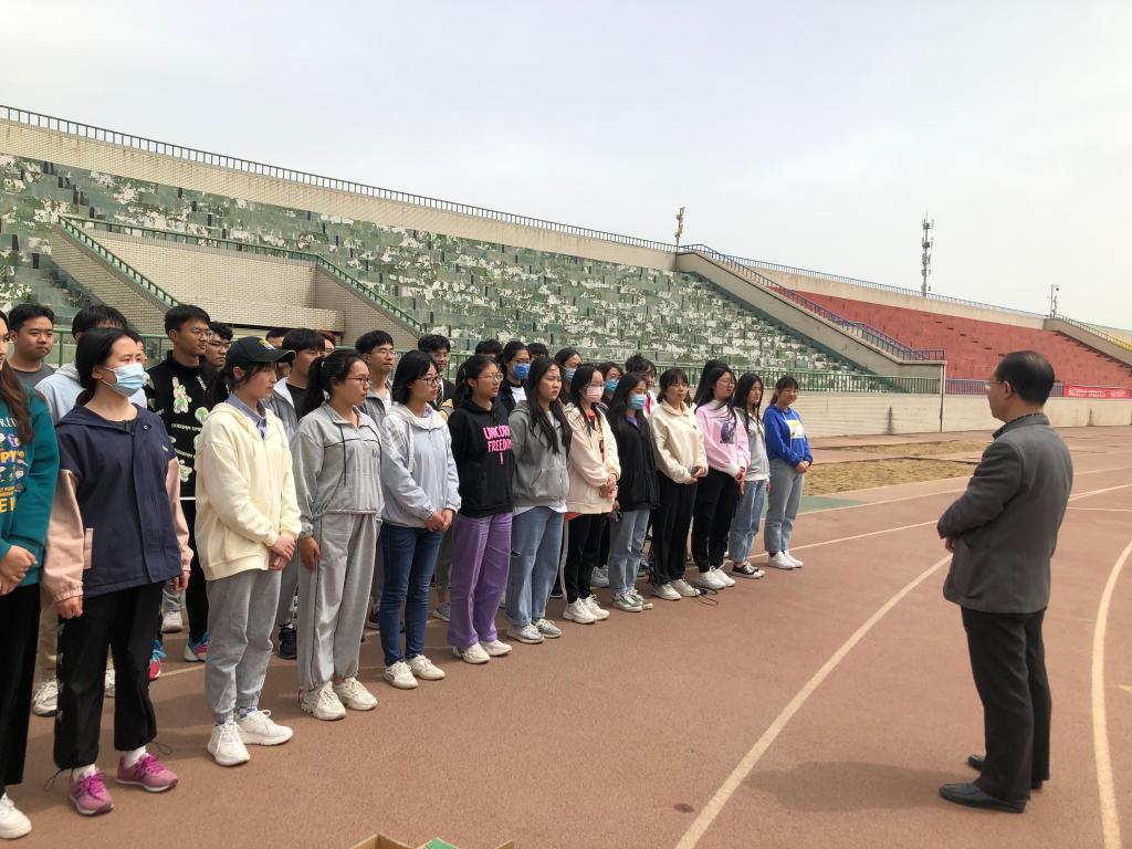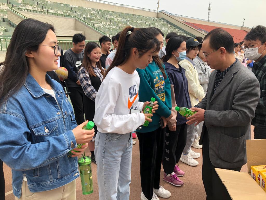 2021年4月16日中午,青青草视频 分党委书记魏锋和各年级辅导员老师们在我校田径场亲切慰问了即将代表青青草视频 参加2021年校运会的运动员们,并发放了慰问品。