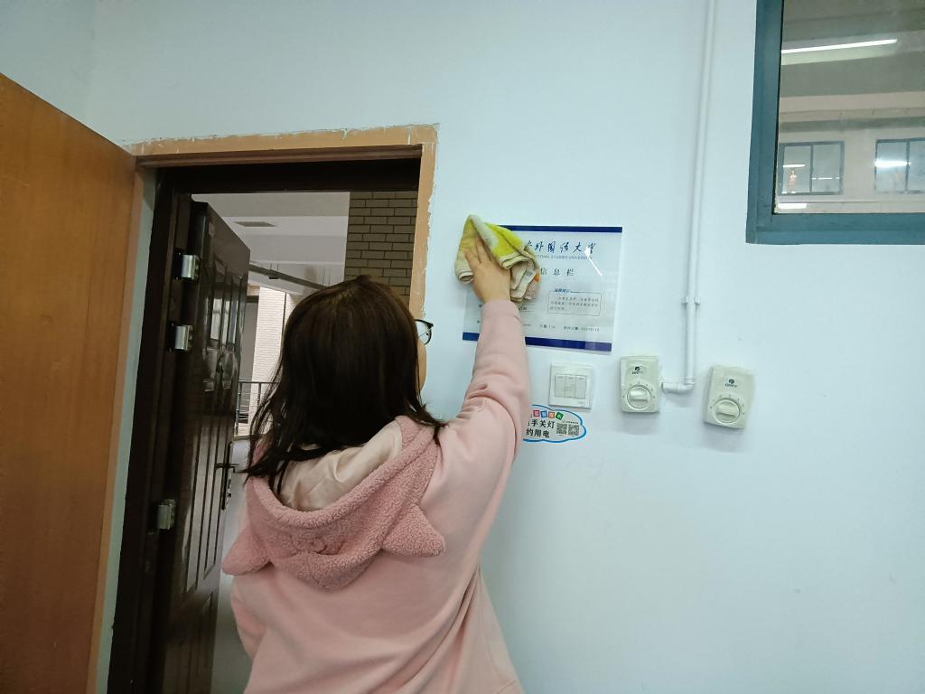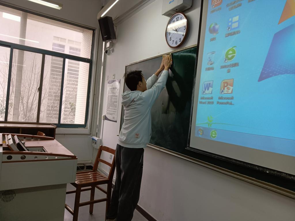 金融1802团支部召集支部全体同学,从实践中领悟雷锋精神,在行动中学习老一辈中国共产党员的优良品质。同学们留意到上课教室虽然每天有专人清扫,但仍存在卫生死角。考虑到春季细菌滋生,大家决定从自己做起,从身边力所能及的小事做起,为老师与同学们营造一个良好舒适的上课环境。2021年3月30日早,金融1802团支部全体同学利用课前时间对JF214教室进行清扫,完成了一次彻底的大扫除。洁净的黑板,干净的讲桌,整齐的课桌,无积灰的门框插座,没有垃圾余屑的地面,都是大家努力学习并践行雷锋精神的结果。