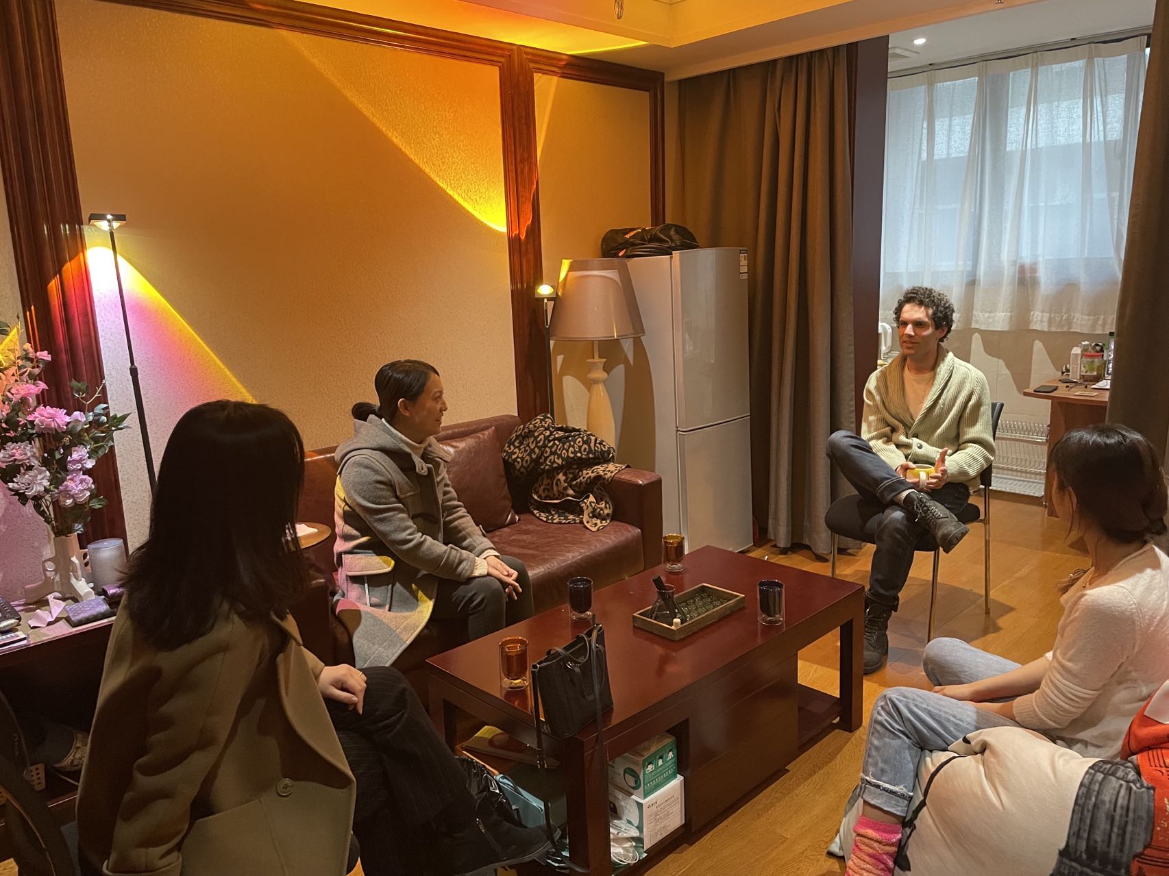 学院老师们首先来到了刚乔迁新居的外教Hamoen的家里,与他和妻子进行了亲切交谈。吕寒副院长仔细询问了他在教学和生活等各方面的情况,代表学校和学院提前传达了新年的祝福,并告知学校疫情期间对外籍教师的管理要求,希望Hamoen能配合做好相关工作。Hamoen和妻子对学校新安排的专家楼居所表示非常满意,也对学院的慰问表示感谢,表示一定会遵守学校规定,积极配合做好期末考试、新学期排课等各项工作。