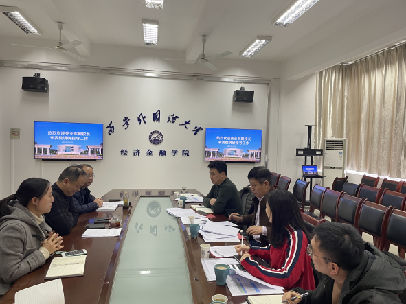 2021年12月2日下午,姜亚军副校长、教务处处长庞闻、教务处副处长葛睿、教务处副处长白洁等一行六人来青青草视频 开展调研指导工作,深入了解学院发展情况,学院院长李村璞、党委书记魏锋和副院长吕寒参加了会议。