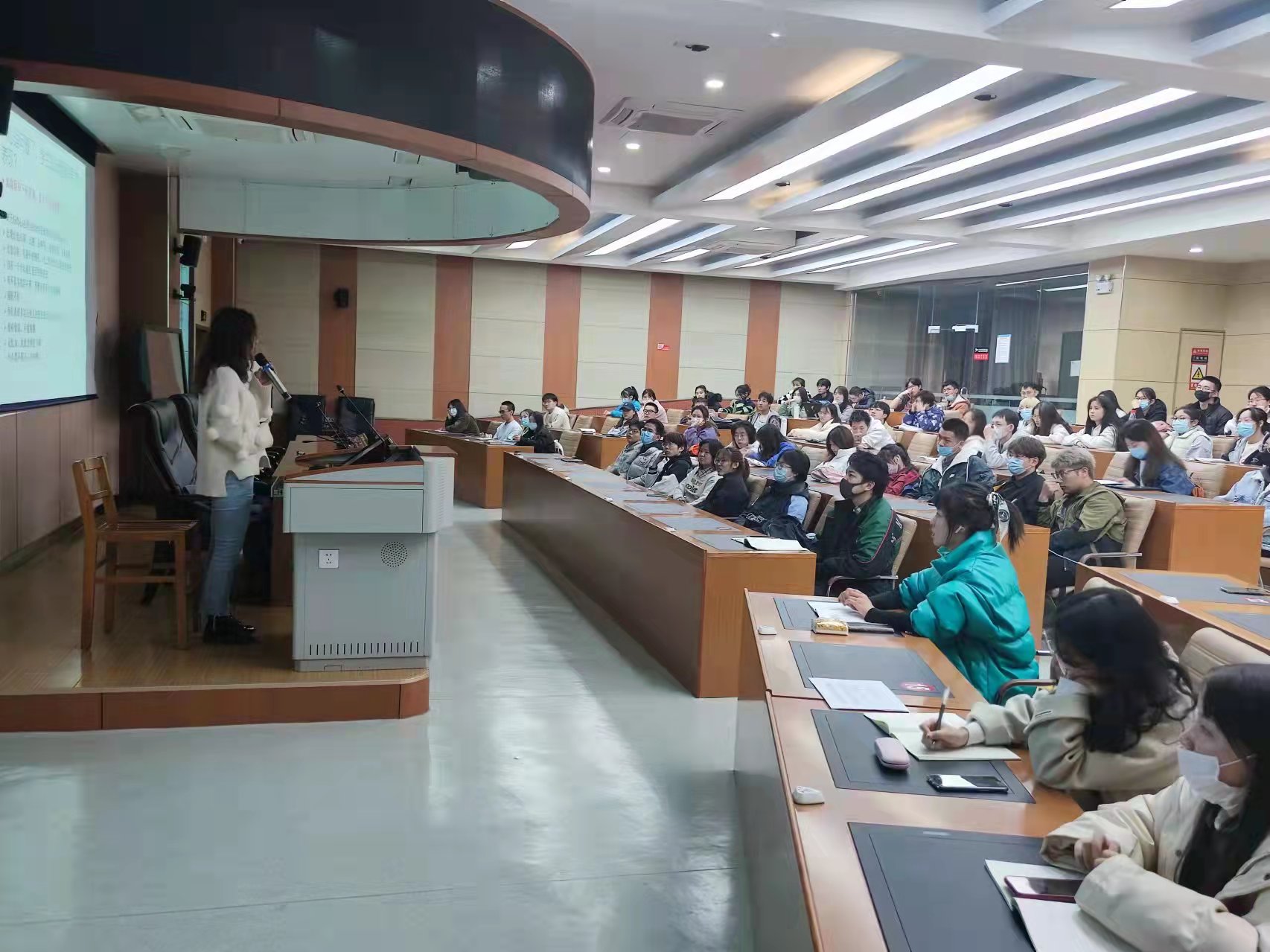 刘佳老师最后总结指出,大学时代是人生的关键时期,学生所触压力无处不在,不可避免,希望大学生能勇敢面自身压力,客观分析问题,并正确进行解决,讲座在一片热烈的掌声中结束。