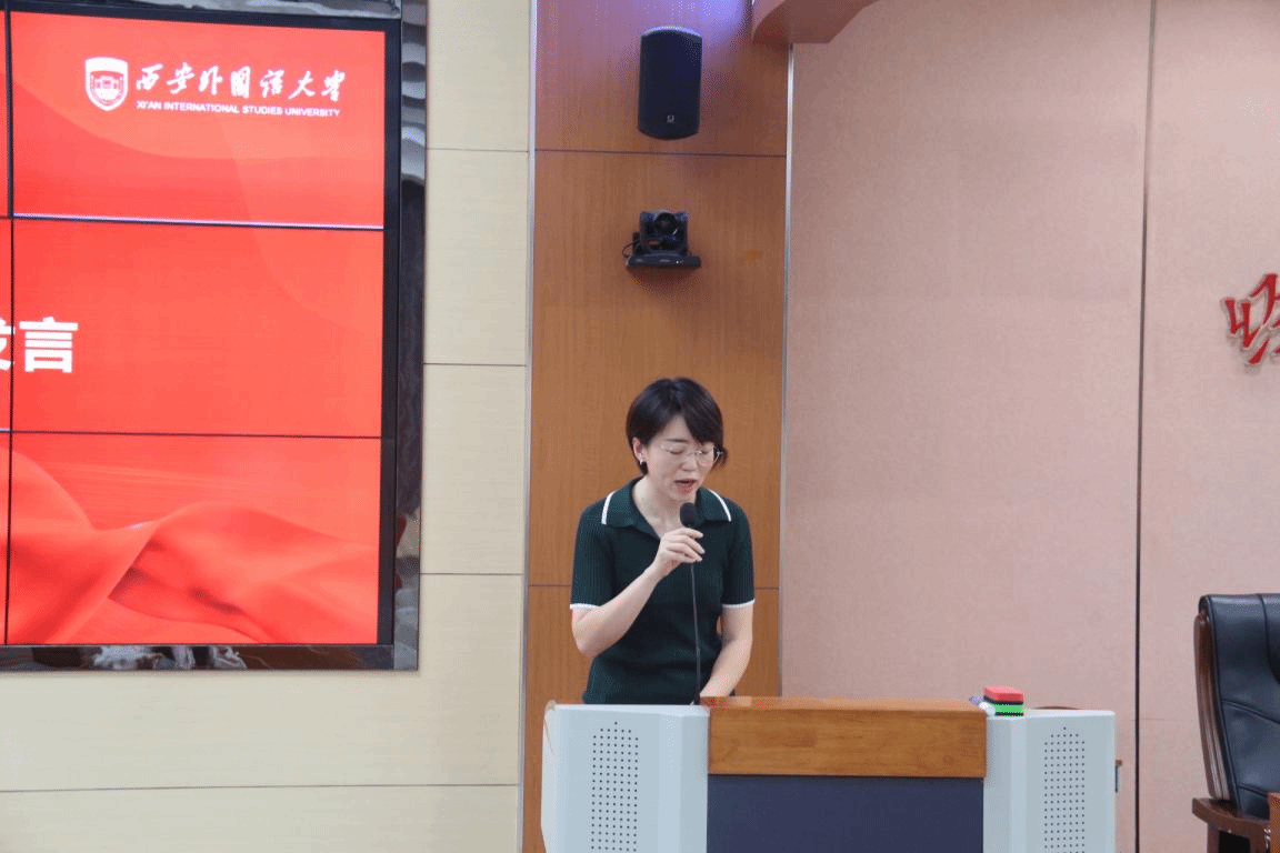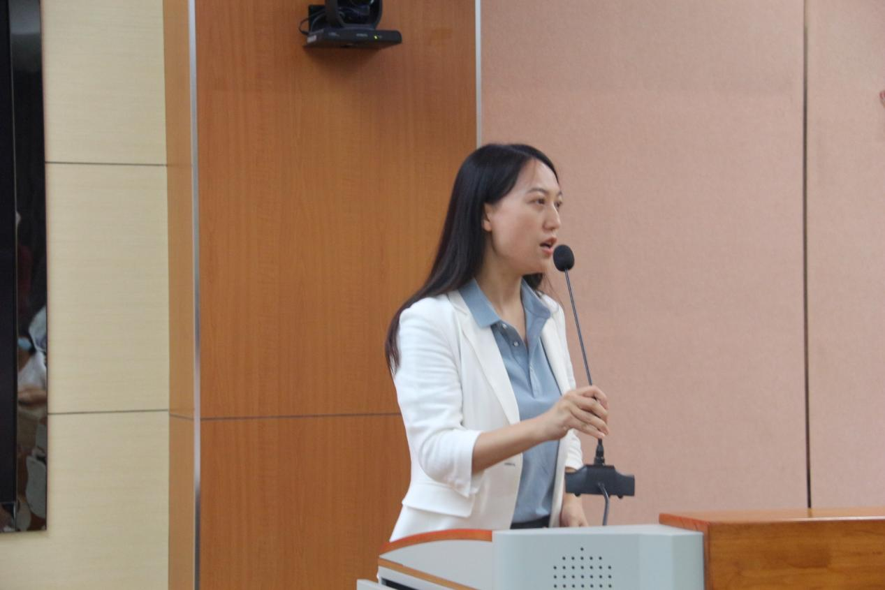 马嫣然老师作为教师代表发言,学院为同学们提供了优秀的师资力量和完备的教学设备,希望全体新生能够珍惜当下,注重积累,明确目标并持续向前奋斗,在追问中求思,在反思中明理,认真镌刻属于自己的青春。
