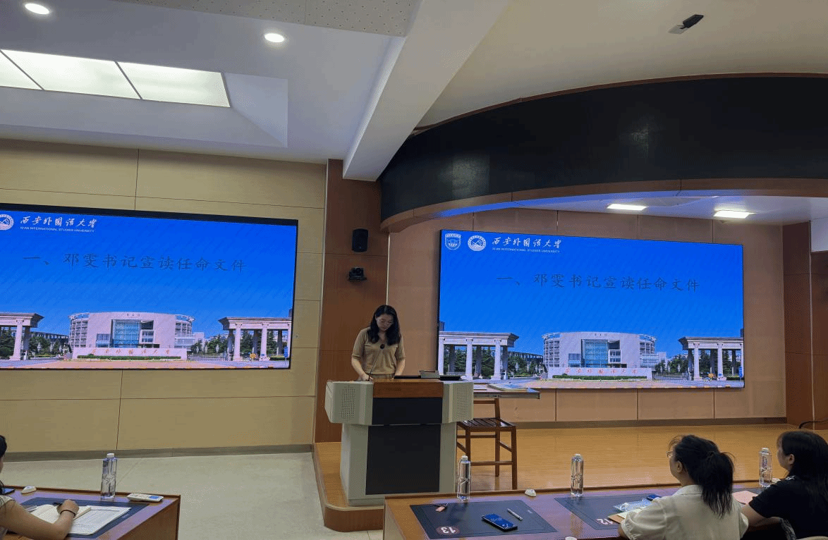 会议伊始,邓雯宣读了科级干部任用文件,为即将奔赴新岗位的张茜举行温情洋溢的欢送仪式,对她四年以来的工作和付出表示衷心感谢。接着,对蔡嘉怡和李敏博的加入表示热烈欢迎,两位同志分别进行表态发言,表示会尽快适应新的岗位角色,主动服务学院教师,认真开展工作,为学院的高质量发展全力以赴!