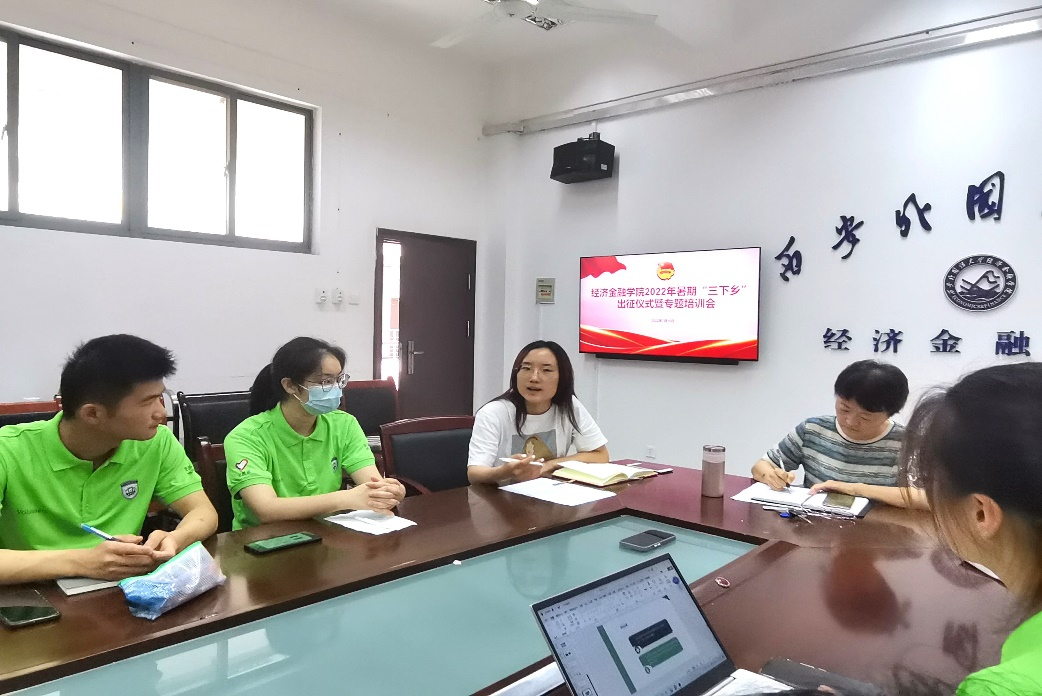 为深入学习宣传贯彻习近平新时代中国特色社会主义思想和党的十九届六中全会精神,贯彻落实习近平总书记关于青年工作的重要思想,迎接党的二十大胜利召开,引导和帮助青青草视频 学生在社会实践中“受教育、长才干、作贡献”,通过实践培养社会责任感、创新精神和实践能力,青青草视频 于2022年7月15日在教学楼E310会议室举行2022年大学生暑期文化科技卫生“三下乡”社会实践活动出征仪式暨专题培训会。院党委副书记王开琴、暑期三下乡社会实践团队代表分线上和线下两种形式参加仪式,仪式由团委副书记梁静主持。