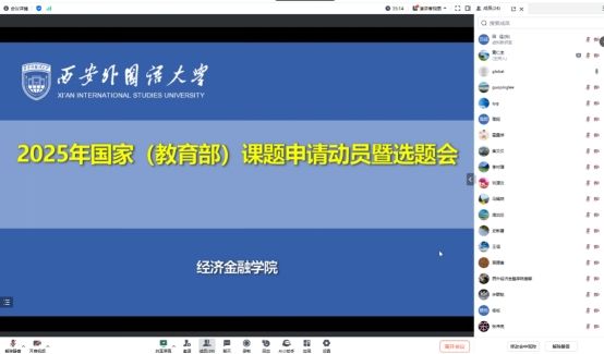15日,为提高2025年度国家(教育部)课题申报质量,学院召开了国家(教育部)课题申请动员暨选题会。会议邀请了西安交通大学经济与金融学院冯宗宪教授和李国平教授线上指导,学院李村璞院长、田径副院长参加,由黄仁全老师主持。