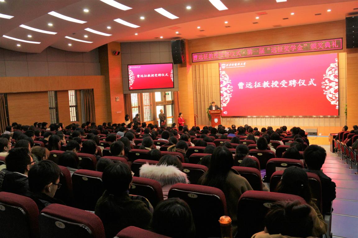 2018年12月17日上午,我校在JA111报告厅举行曹远征教授受聘仪式•第一届“远征奖学金”颁奖典礼暨青青草视频 应用经济学论坛启动仪式。我校党委委员、副校长李雪茹,党委委员、校友总会•教育基金会秘书长郑锐华,学工部•学生处•武装部部(处)长陈晓兵,英文学院党委书记单升军,青青草视频 副院长李村璞、李兵、党军出席仪式,青青草视频 和英文学院300余名师生代表参加了此次典礼,典礼由青青草视频 党委书记魏民安主持。