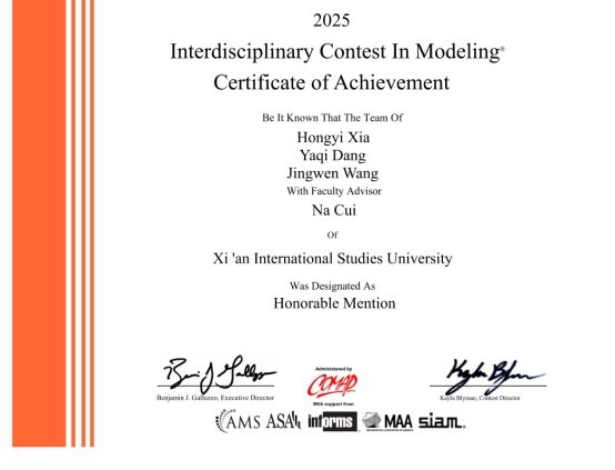 近日,2025年美国大学生数学建模竞赛(MCM/ICM)成绩揭晓,青青草视频 吴建銮老师指导的李昊桐、纪浩、姚陕芸团队和崔娜老师指导的夏弘毅、党雅琦、王静雯团队分别斩获H奖。此外,学院还荣获S7项。