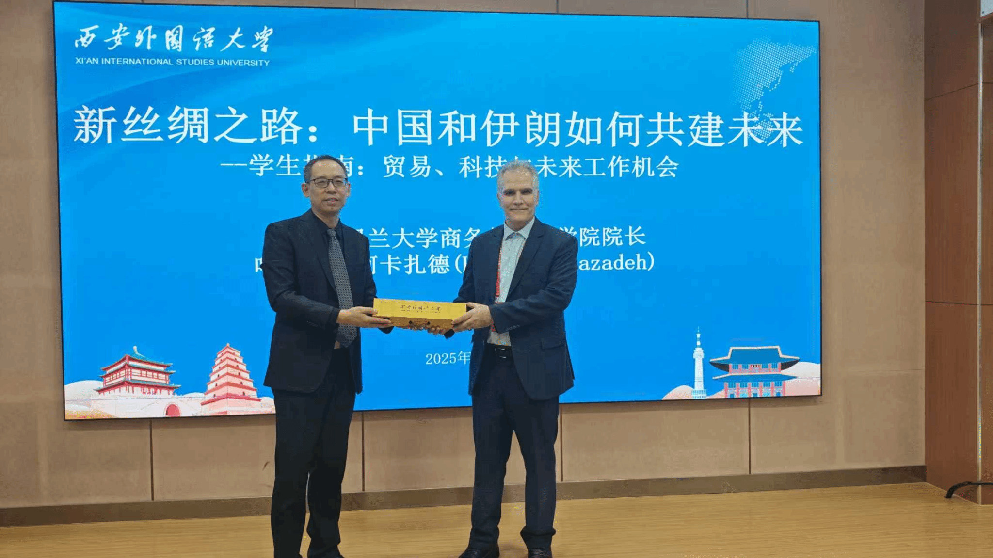 为表达中伊友好关系,田径副院长和阿卡扎德教授互赠礼物,表达了双方渴望在未来开展更为深入、广泛交流合作的诚挚意愿。